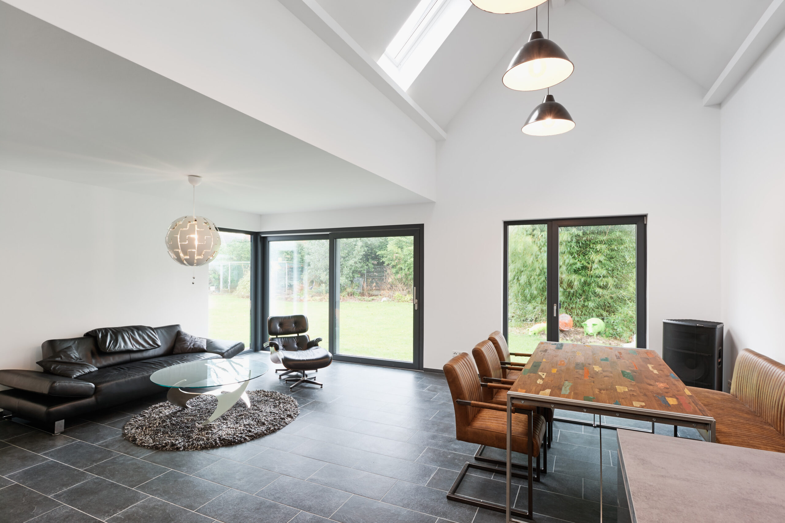 An der Stelle wo einst eine alte Lagerhalle stand, fand das neue Einfamilienhaus seinen Platz, angegliedert an die vorhandene Garage; das Ganze zusammengefasst zu einem Ensemble. Das Gebäude bietet Platz für zwei bis drei Personen mit einem großzügigen Wohn-Essbereich sowie Büro / Gäste-Bad im Erdgeschoss und Schlaf- / Badezimmerbereich im Obergeschoss.